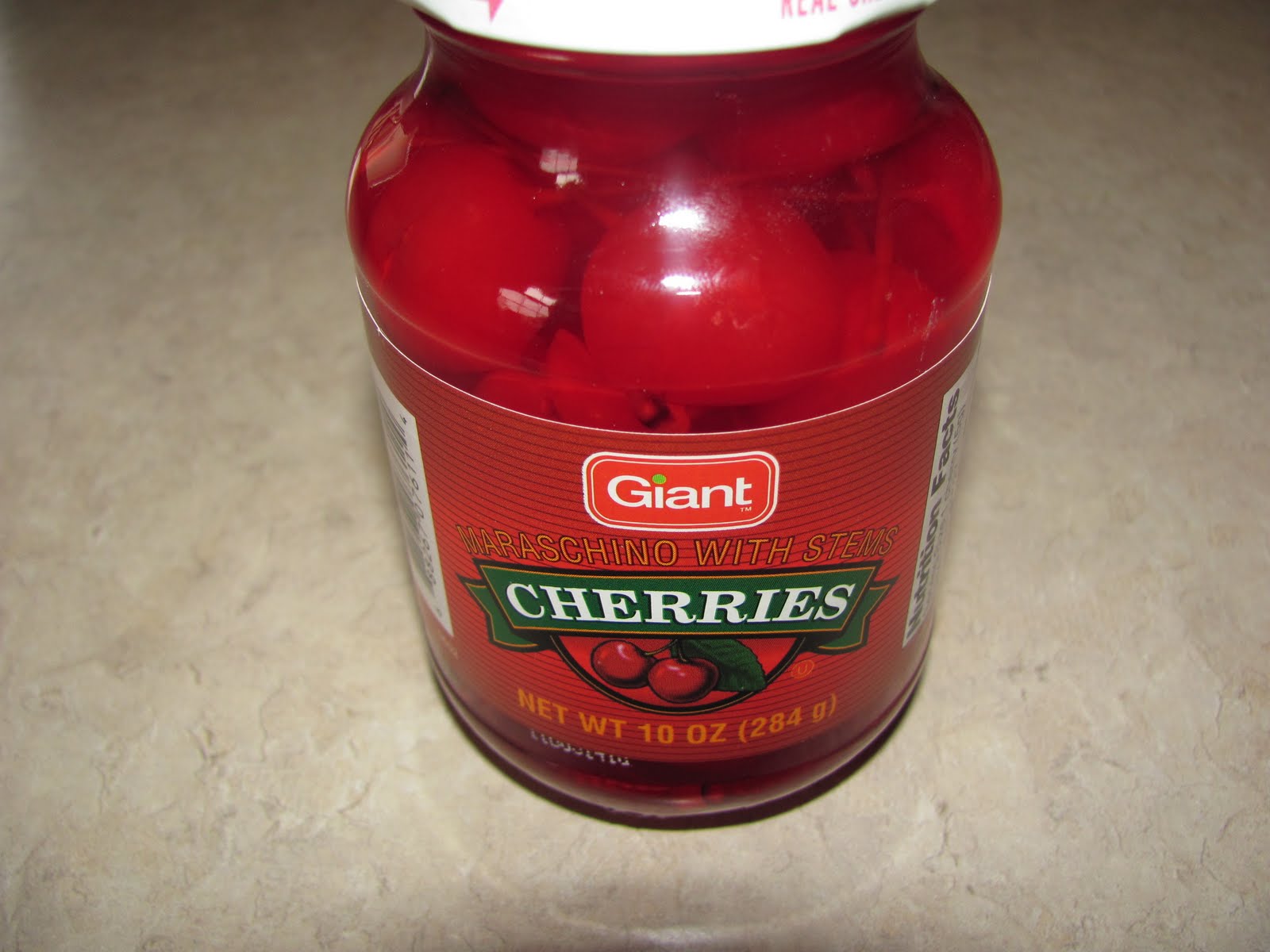 10 oz jar Maraschino cherries w/ out stems (cut in half)